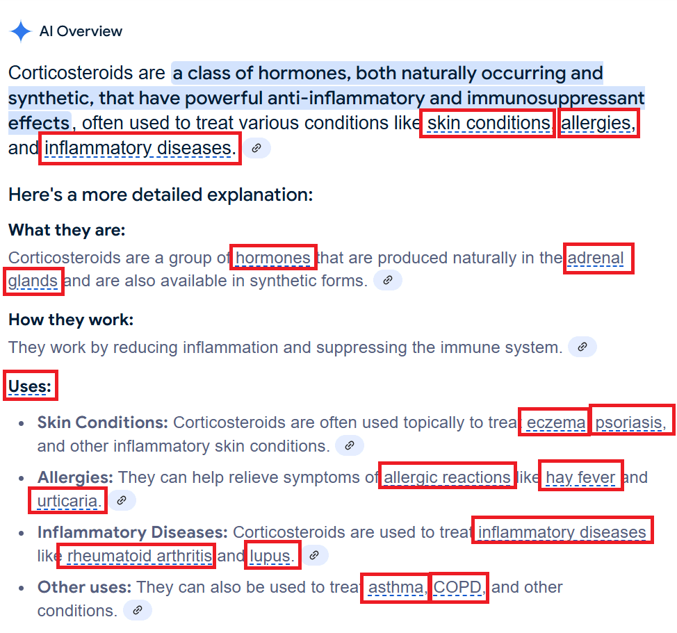“Para ayudar a los usuarios a explorar temas y descubrir sitios relevantes, hemos añadido enlaces a ciertos términos dentro de AI Overviews cuando nuestros sistemas consideran que podría ser útil”, dijo un portavoz de la empresa.
